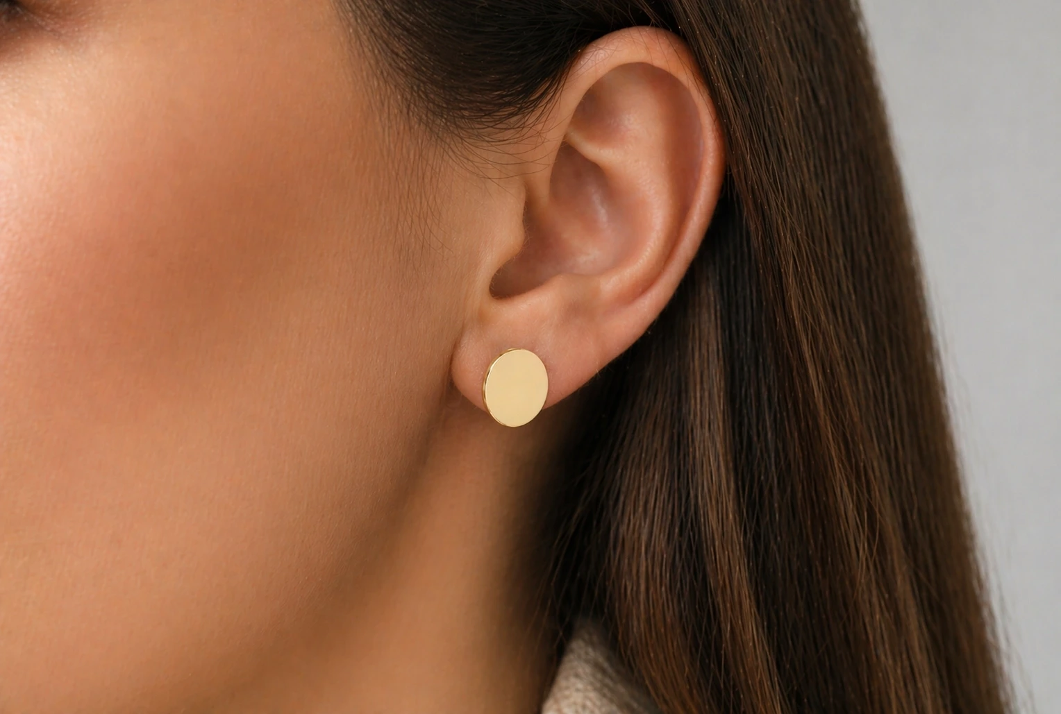 Dolgun disk formuyla tasarlanan bu küpe, sade ama güçlü bir stil sunar.