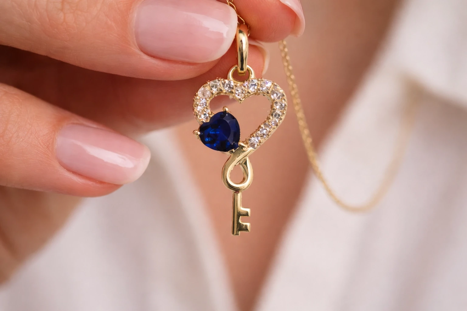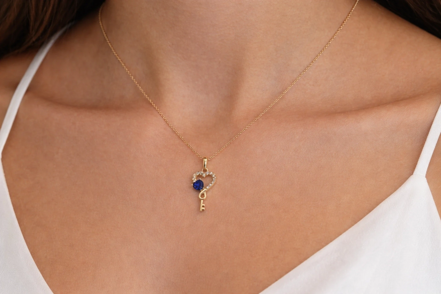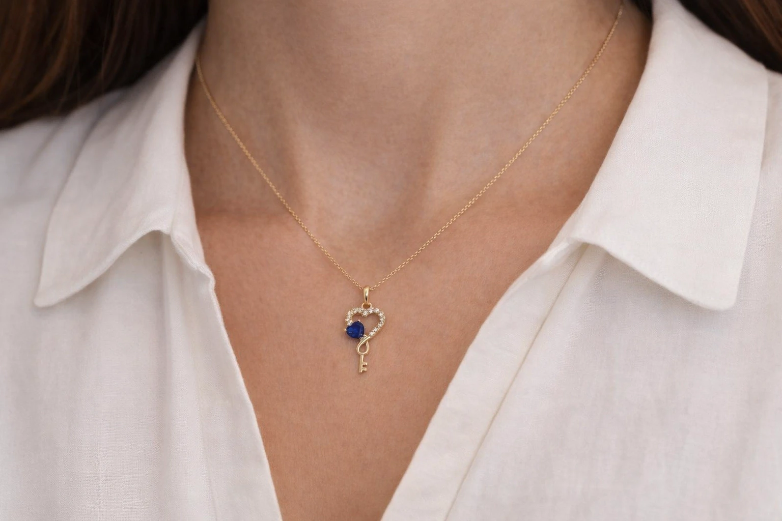 Kalp ve anahtar formunun birleşimiyle tasarlanan bu model, zarif ve anlamlı bir stil sunar.