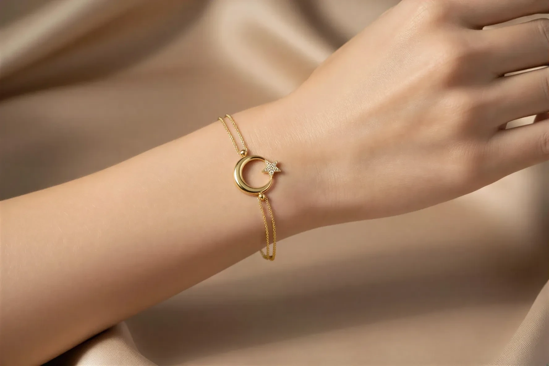 Türk kültürünün en özel sembollerinden biri olan ay yıldız, zarif bir bileklik formunda modern bir yorum kazanıyor.