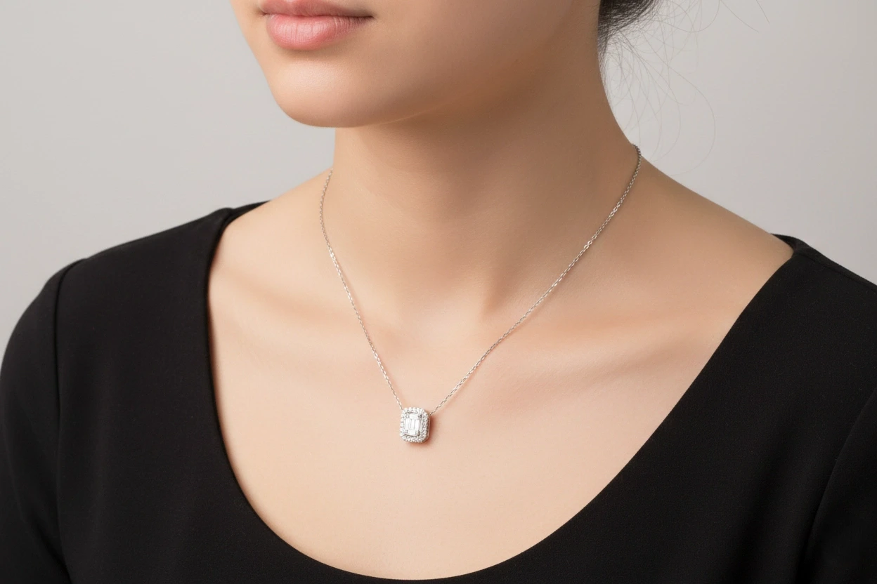 | Tasarım | Baget taşın modern çizgileriyle zarif bir şekilde buluştuğu şık kolye tasarımı |
