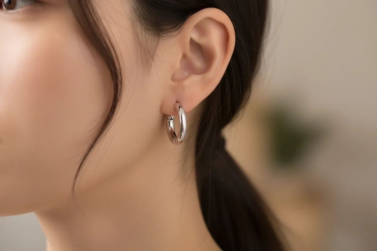 14 ayar beyaz altının modern ve sofistike duruşunu yansıtan bu halka küpe, sade şıklığın en zarif örneklerinden biridir.