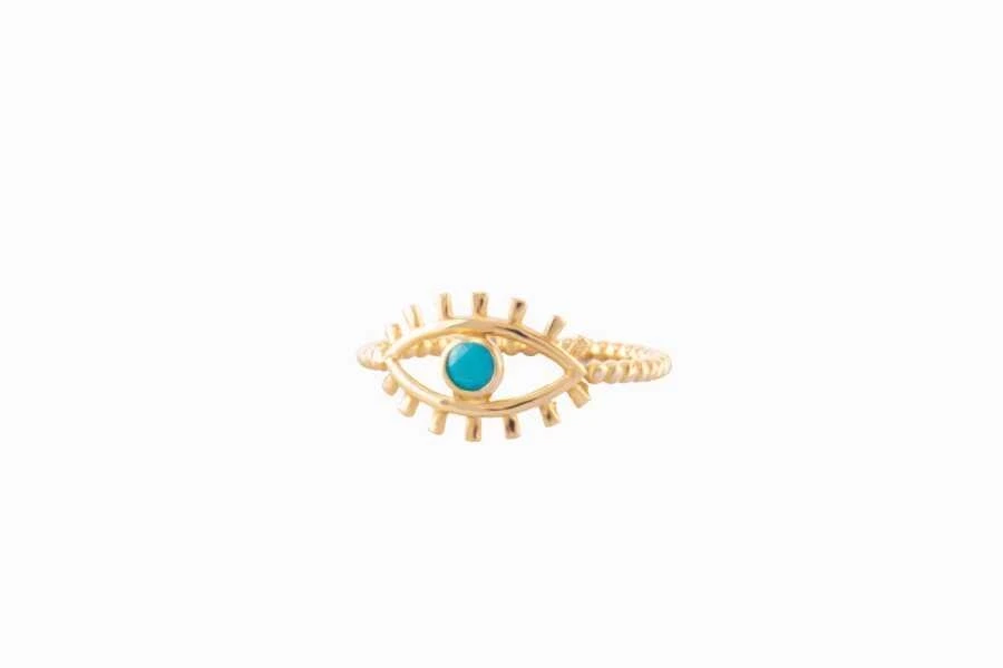 14 Ayar Göz Detaylı Yüzük, göz motifinin mistik anlamını modern tasarım ile buluşturarak zarif bir şıklık sunuyor.
