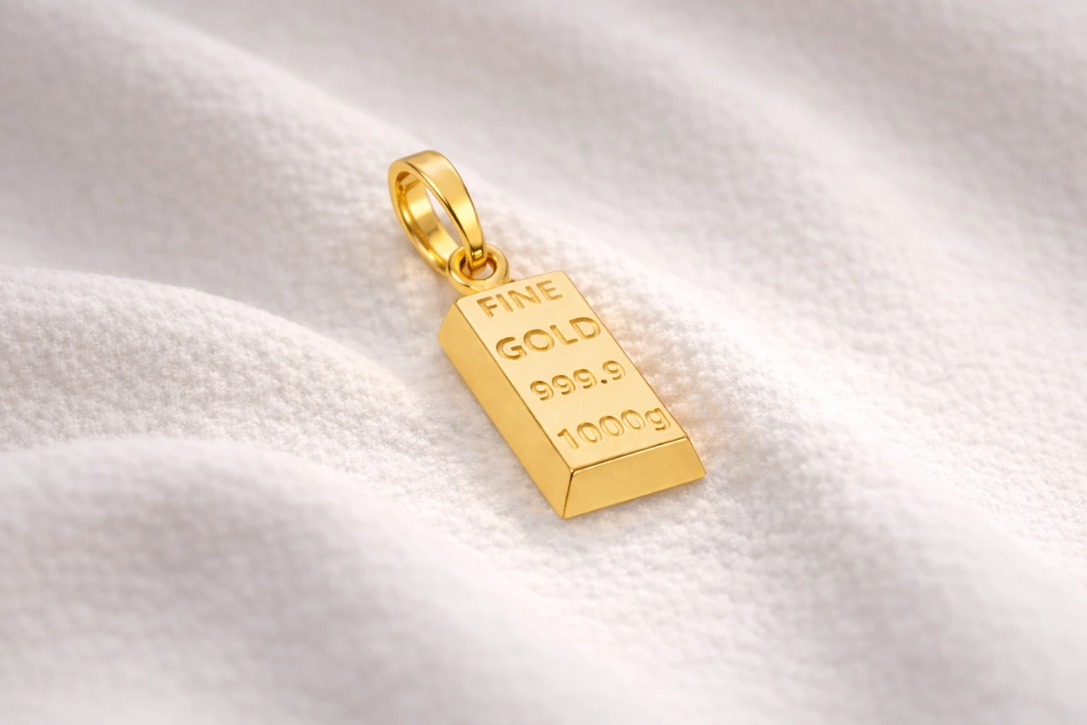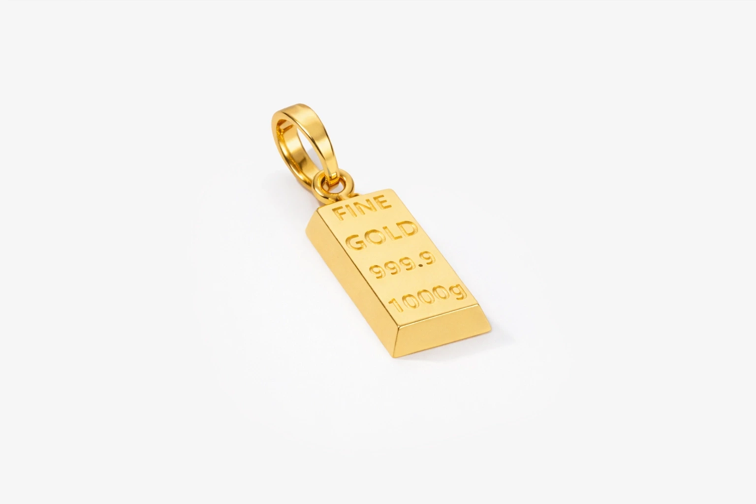 Külçe formunun güçlü ve sade çizgileriyle tasarlanan bu kolye ucu, modern görünümüyle dikkat çeker.