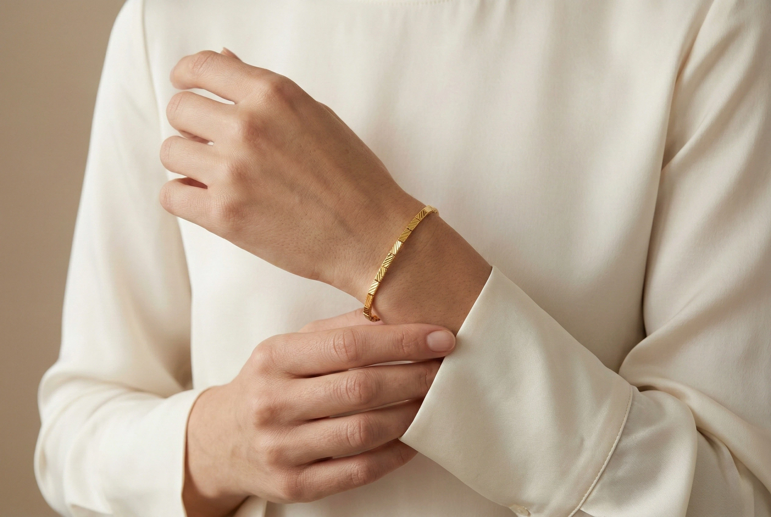 | Tasarım | Lineer çizgilerle hareketlendirilmiş modern altın bileklik modeli |