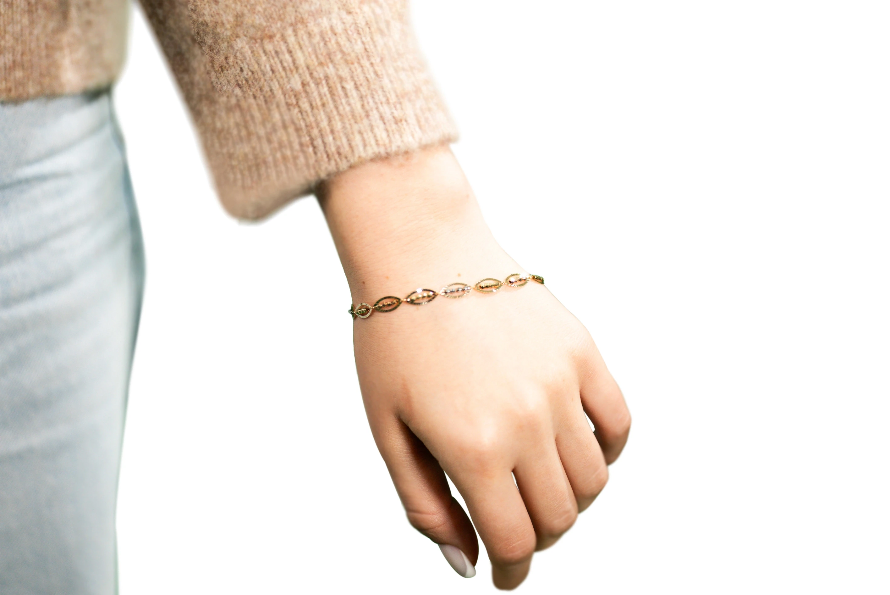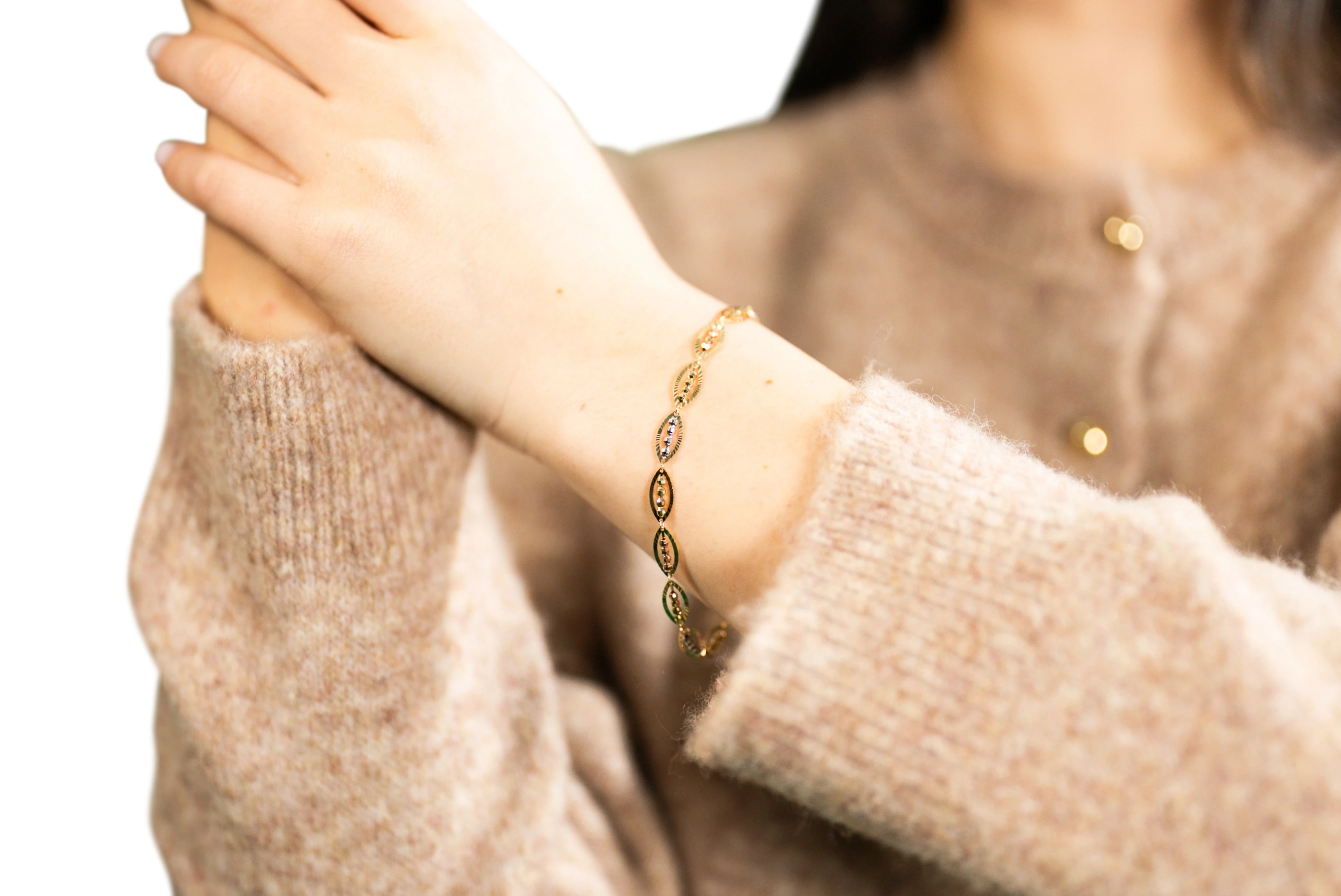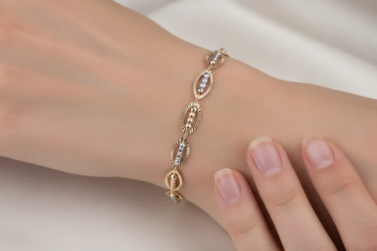 | Tasarım | Modern desen detaylarıyla hareket kazandırılmış zarif altın bileklik |