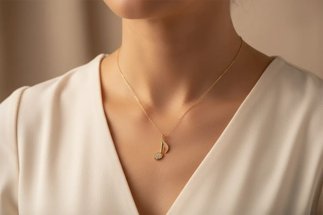 | Tasarım | Müzik notasından ilham alınarak tasarlanmış modern ve zarif kolye |