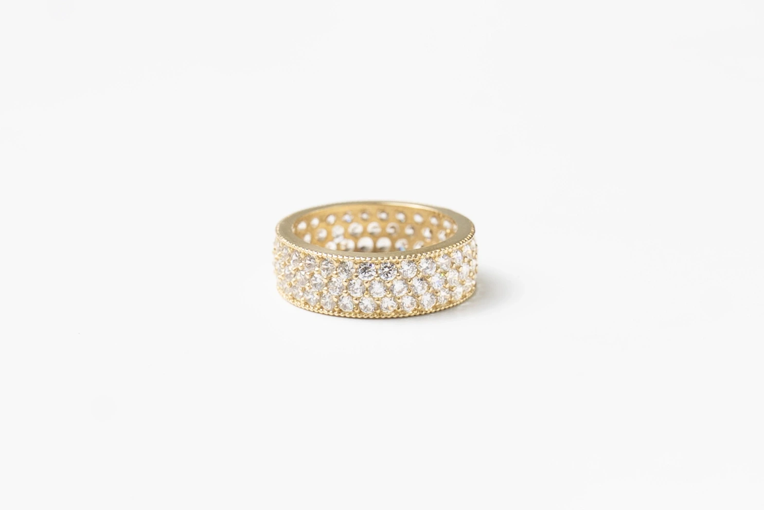 Işıltısı her açıdan görülen, zarif ve iddialı bir duruş. Bu taşlı tam tur yüzük; şıklığını her detayda hissettirmek isteyenler için özenle tasarlandı.