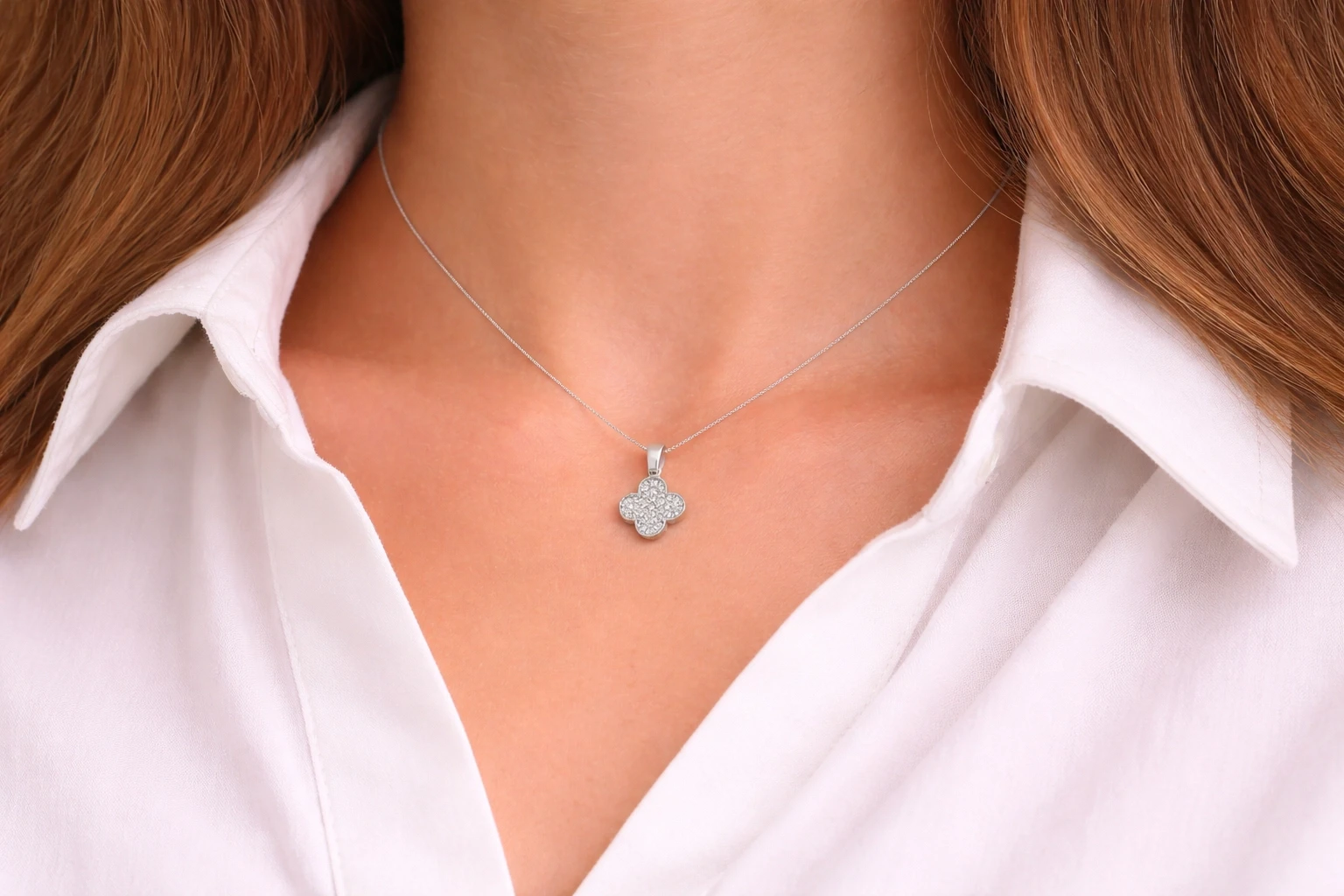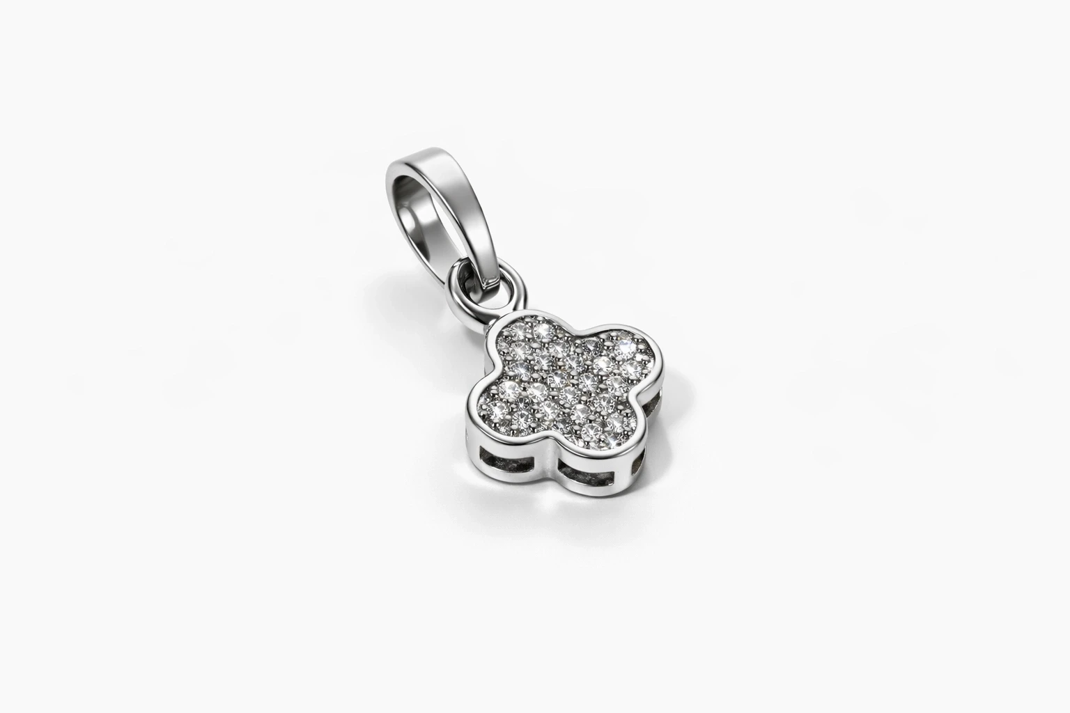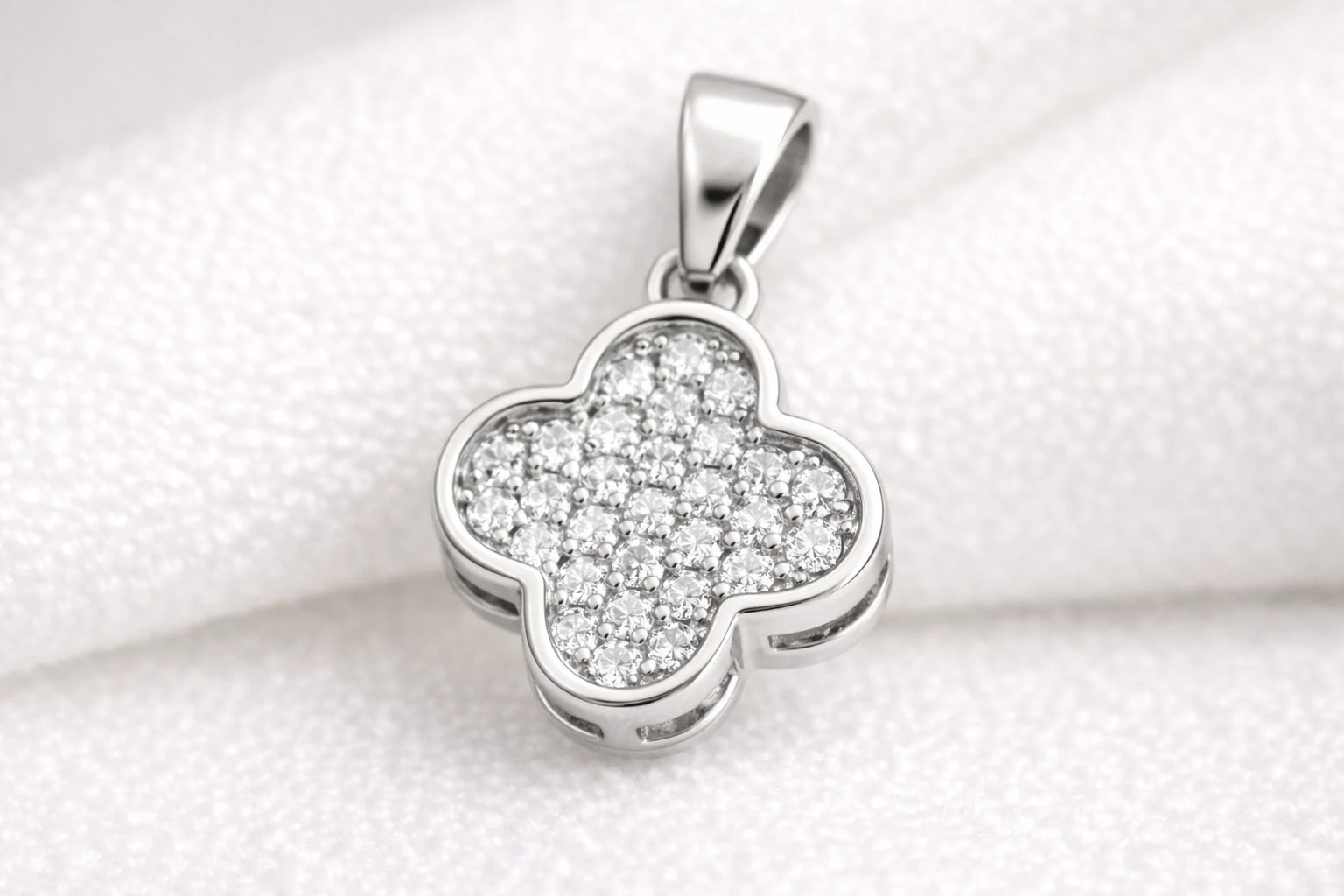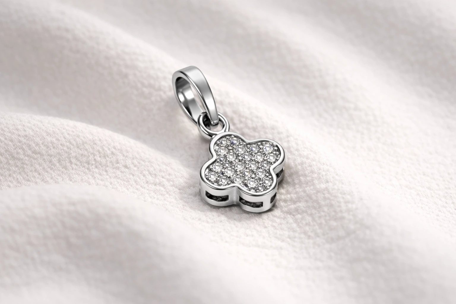 Yonca formunun zarif görünümüyle tasarlanan bu kolye ucu, sade stilinize anlamlı bir dokunuş katar.