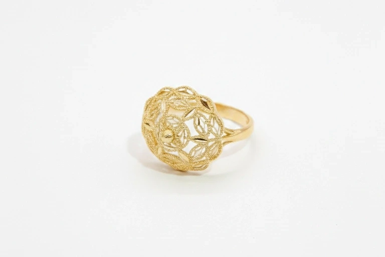 | Tasarım | Telkari işlemeli kafes formuyla el işçiliğini öne çıkaran altın yüzük modeli |