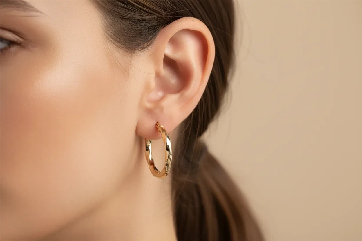 2,42 gramlık ağırlığı sayesinde hem güçlü hem de zarif bir görünüm sunar. Büyük boy tasarımı, kulakta belirgin bir duruş sağlayarak iddialı bir şıklık oluşturur.